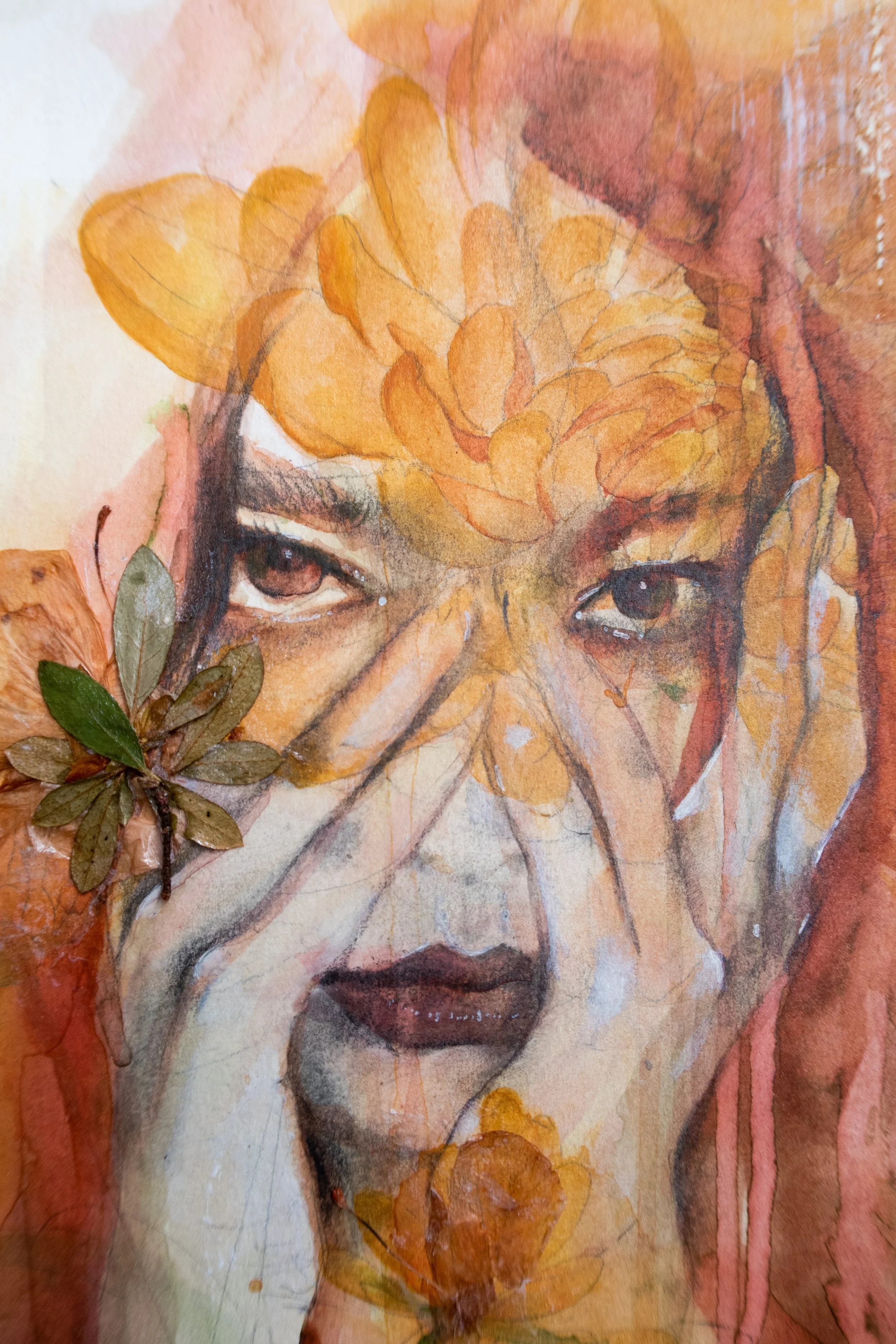 decomposition. watercolor, acrylic, graphite, flowers. 11x15”. 2022.