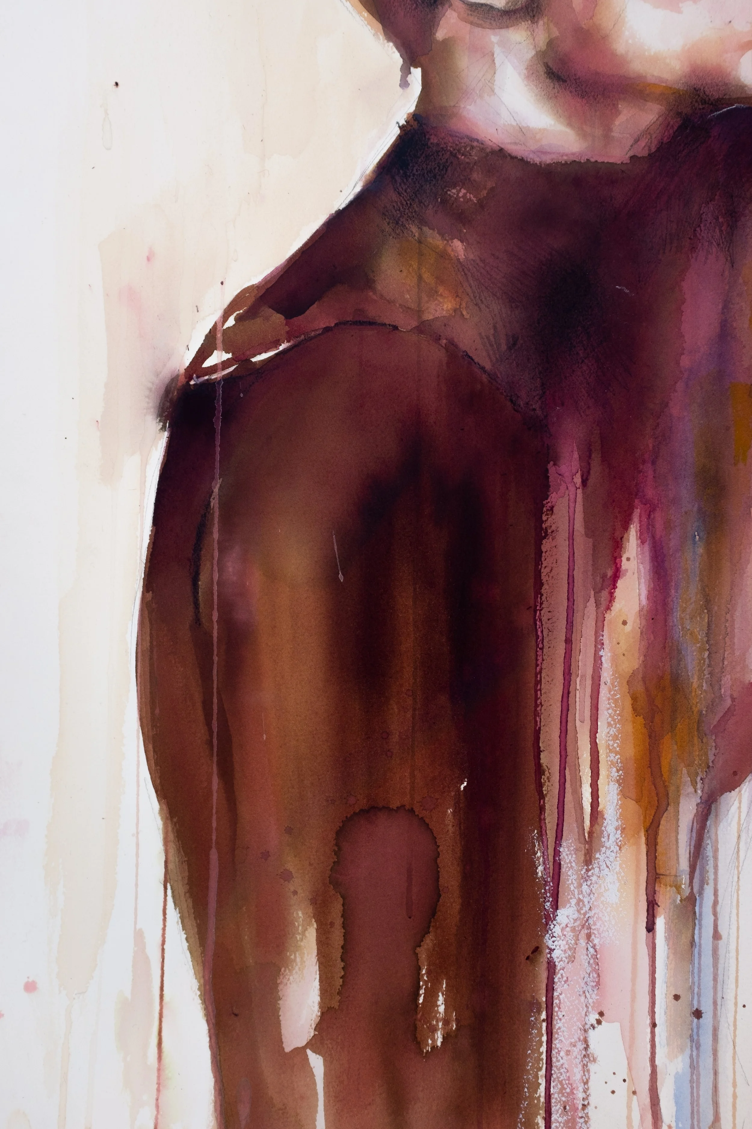 (s)wallow. watercolor, acrylic, charcoal, oil pastels. 2023.